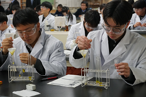 1月18日(木)京都大学との高大連携講座を実施しました。人間・環境学研究科から山本行男先生をお招きして「光る分子―合成して観察しよう―」というタイトルで実験・講義をしていただきました。