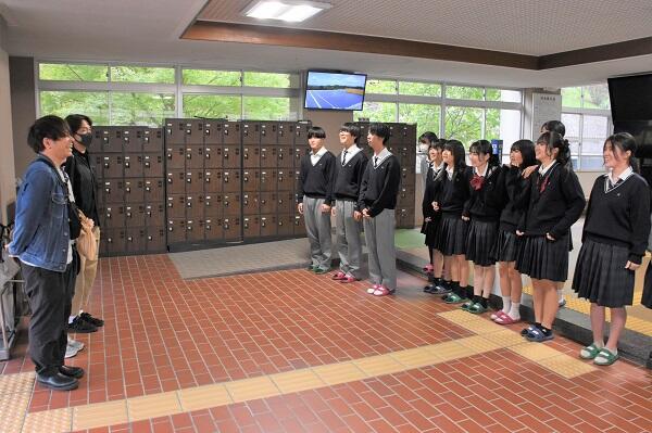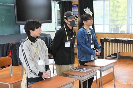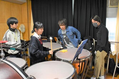 練習後には、実際の楽器を間近で見ていただいたりしながら、部員とも交流させていただきました。部員たちも交流させていただいたことで、より親密にさせていただきコラボ演奏がよりよくなると確信しました。