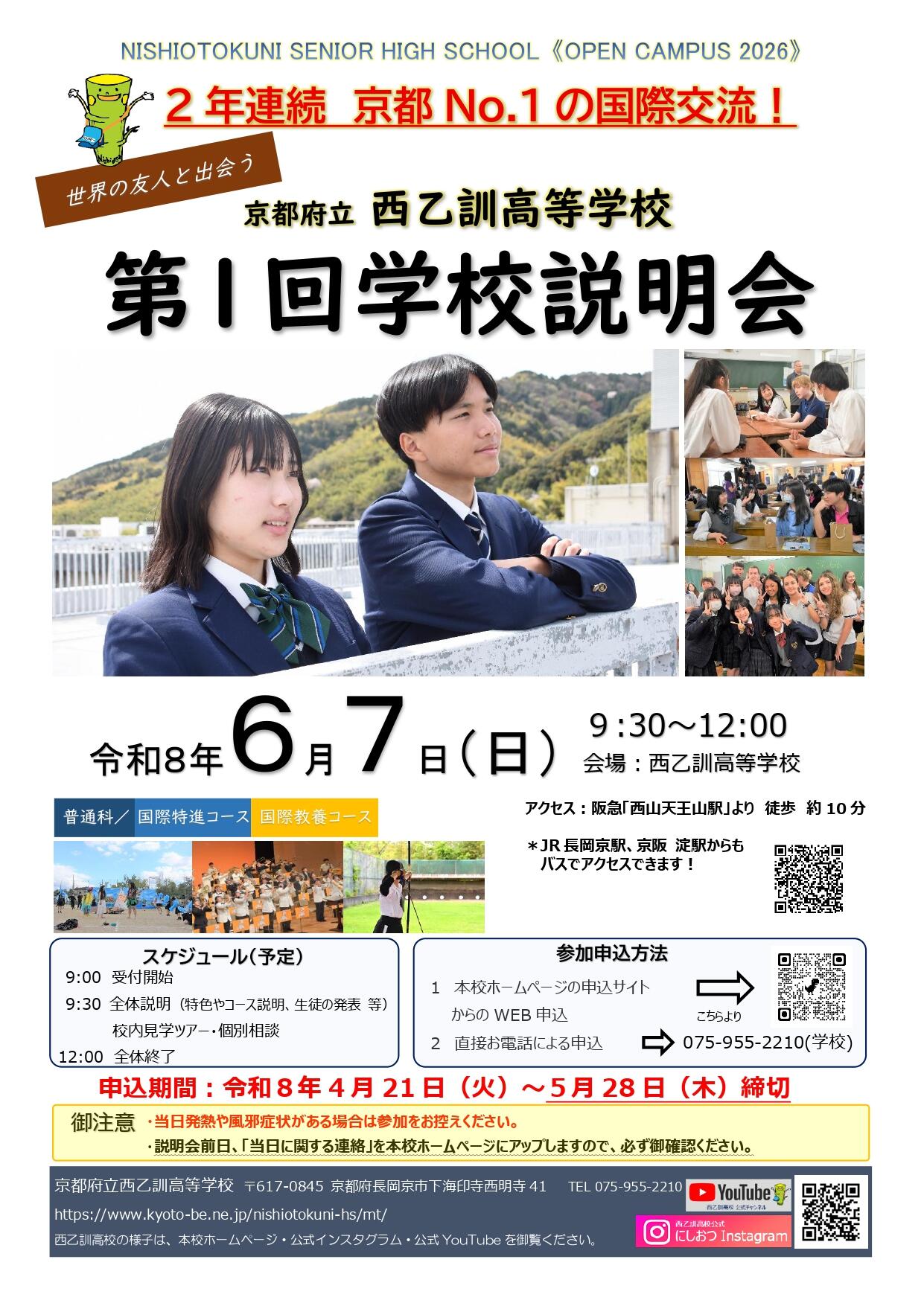 お問い合わせは、西乙訓高校 075-955-2210(担当:広報・図書部)まで
