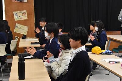 高校生、小学生から英語でのクイズをしたあと職業カルタを行い、良い交流をすることができました。