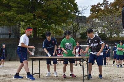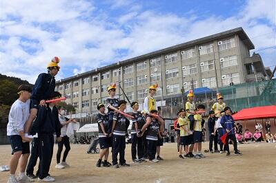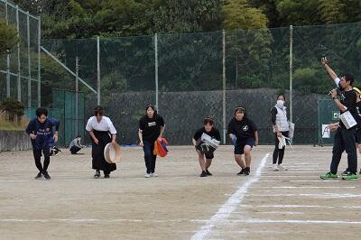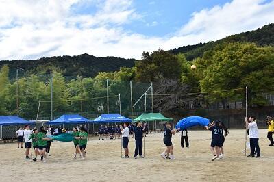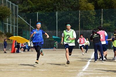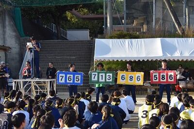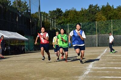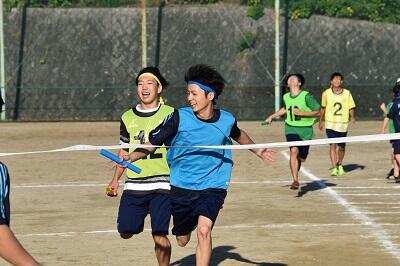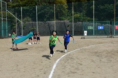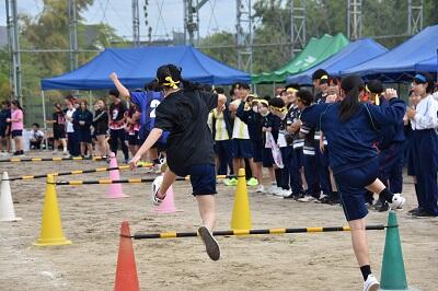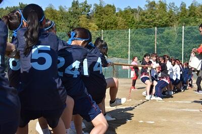 借り物競走、綱引き、1年生 玉入れ、2年生 台風の目、3年生 ボールアップリレー、障害物競走、騎馬戦、クラス対抗リレー、合同体操、クラブ対抗リレー、クラス対抗大縄跳び、団対抗リレーが行われ、どの種目にもたくさんの声援がありました。