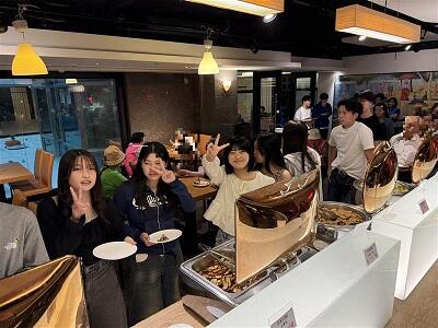 練習後には、実際の楽器を間近で見ていただいたりしながら、部員とも交流させていただきました。部員たちも交流させていただいたことで、より親密にさせていただきコラボ演奏がよりよくなると確信しました。