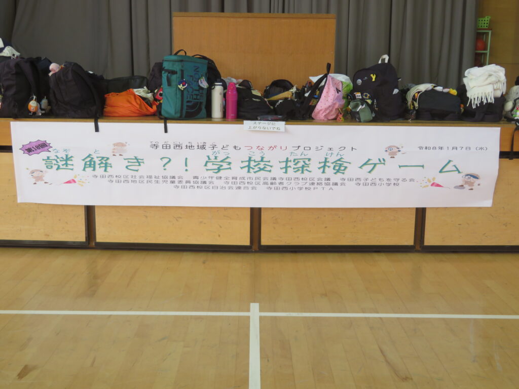 1/7(水)、寺田西地域子どもつながりプロジェクト主催の「謎解き?!学校探検ゲーム」が寺田西小学校にて行われました。そのお手伝いとして、本校のVAC(生徒会ボランティア団体)が参加しました。