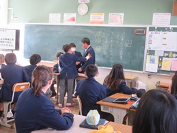 1/21(水)のNTでは、12月に行った人権学習を元にして、各クラスのリーダーたちが「いじめについて」の授業をしました。