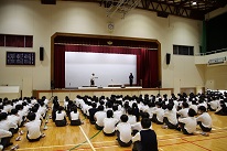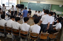 学校日誌10月16日(木)文化祭取組が始まりました。1年生は合唱、2,3年生は演劇の発表ですが、この日は「劇団衛星」という京都を拠点に、既存のホールのみならず、寺社仏閣・教会・廃工場等「劇場ではない場所」で公演を行われている皆様に演劇を見せていただき、その後は2年生が各教室でシアターゲームや演劇指導を受けました。これからの演劇の発表に向けたよい体験をすることができました。
