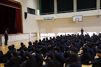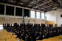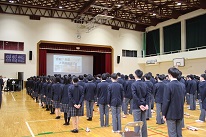 12月24日(水)2学期終業式を実施しました。学校長からは式辞の中で、2学期に実施した人権学習の振り返りとともに多様性や思いやりについて話がありました。式中の生徒たちは2学期の締めくくりにふさわしい、しっかりとした態度で参加できていました。また、式の最後には2年生の新本部役員から自己紹介とこれからの決意が伝えられました。生徒のみなさん、よい冬休みを過ごしてください。