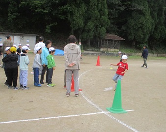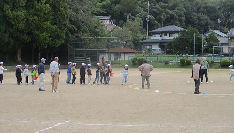 西八田キッズクラブに1・2年生が全員参加し、地域のサポーターの方に楽しい活動を教えてもらっています。今回はミニ運動会でした。水運びリレーやペットボトル転がしリレーや円形リレーなどでしたが、子どもたちは大はしゃぎでした。普段学校ではなかなかでいない遊びなども教えていただき、大変ありがたく思っています。西八田キッズクラブ サポーターの皆様、いつもありがとうございます。