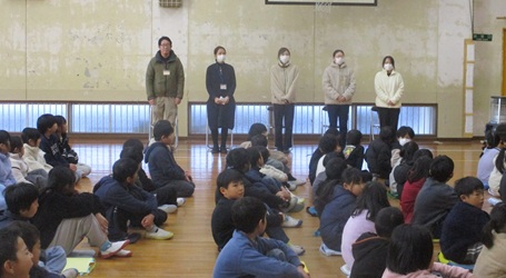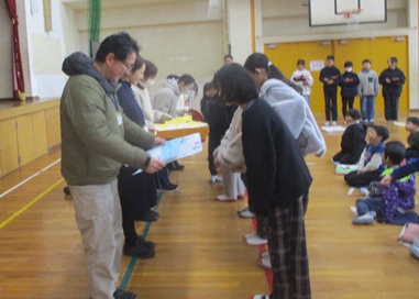 給食感謝集会 子どもたちや学校の様子 2026.01.27 給食週間が終わり、給食感謝集会を開きました。調理員さん・栄養士さん・用務員さんに対して感謝の気持ちを伝えるとともに、各学年からカレンダーや手紙など心のこもったプレゼントを渡しました。それぞれの方に質問をしたり、栄養士さんからは給食ができるまでをビデオを使って分かりやすく話していただきました。これかろも、感謝の気持ちをもって給食を食べてほしいと思います。