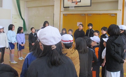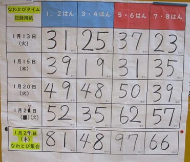 なわとび集会 子どもたちや学校の様子 2026.01.30 大雪警報のため延期になっていた「なわとび集会」を実施しました。この日のために子どもたちは朝練習以外にも、休み時間をつかって練習してきました。本番では最初に円陣をくみ、心を合わせて本番に挑みました。結果はどの班も最高記録を出すことができました。結果も素晴らしいですが、これまでの頑張りや応援の姿、低学年に優しく教える姿、一回でも多く跳ぼうと頑張る姿に大きな拍手を送ります。