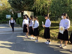 あいさつ登山チャレンジ Twitter Facebook はてブ Pocket LINE コピー 2025.10.21 10月10日(金)の登校の様子です。2回目の「あいさつ登山チャレンジキャンペーン」として、生活委員の生徒が元気にあいさつしています。キャンペーンを続けることで、どんどん大きな声であいさつができるようになってほしいと思います。