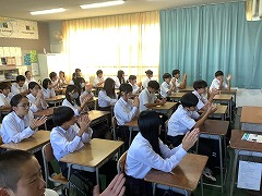10月10日(金)、10月11日(土)に開催される中丹中学校駅伝競走大会の激励会を行いました。今年度は、放送での開催となりましたが、参加する生徒たちは意気込みを十分に伝えることができました。また、全校生徒は、心から拍手をすることで当日の活躍への期待を伝えることができました。