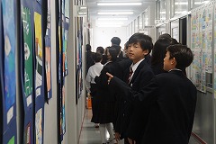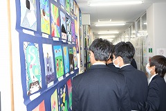 文化祭(展示鑑賞) Twitter Facebook はてブ Pocket LINE コピー 2025.10.30 10月29日(水)、文化祭の展示鑑賞を校内で行いました。この取組は、30日(木)の保護者の方々に公開する展示作品を校内で鑑賞するものです。仲間の作品を観賞しあうことで、今後の作品制作につなげることができました。