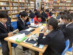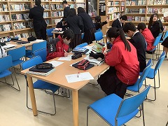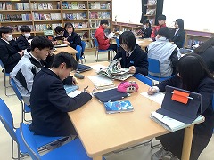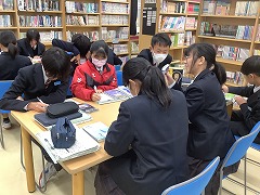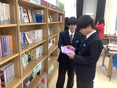 12月17日(水)、19日(金)、22日(月)、2年生が図書室でビブリオバトルを行いました。ビブリオバトルとは、それぞれお気に入りの本を持ち寄り、読んだ本について自分の言葉で本の魅力を伝え合う「書評ゲーム」です。今回は「科学の本」か「科学以外の本」で役割を決め、班内での発表を行いました。この取組を機会に図書室に足を運ぶ習慣を身に付けてほしいと思います。