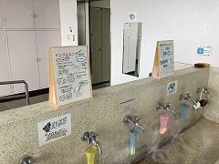 感染症予防 Twitter Facebook はてブ Pocket LINE コピー 2026.01.28 1月21日(水)の教室棟の手洗い場の様子です。2年生の女子が保健体育で作成した感染症予防のポスターが掲示されています。インフルエンザが流行する季節ですが、生徒どうしで声を掛け合い、うがい、手洗いを心がけてほしいと思います。