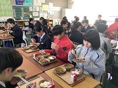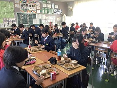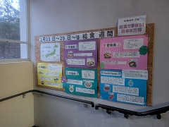 1月23日(金)~29日(木)は、給食週間です。今年は「給食で学ぼう!日本の万博」をテーマとして、日本での万博の開催地にちなんだメニューが提供されています。味噌カツやたこ焼き、アーサ汁など魅力的なメニューに生徒たちは毎日わくわくして午前中の授業にのぞんでいます。