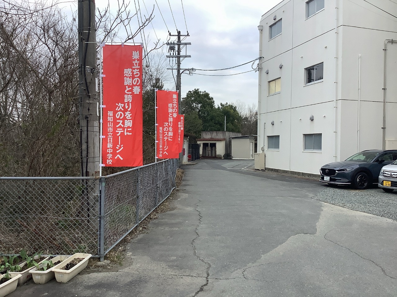 旅立ちの春 感謝と誇りを胸に 次のステージ Twitter Facebook はてブ Pocket LINE コピー 2026.03.13 3月9日(月)の玄関前の「のぼり」が卒業式仕様になりました。3月13日(金)の3年生の旅立ちを全校でお祝いしています。