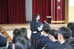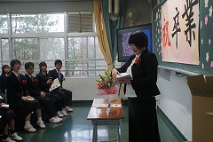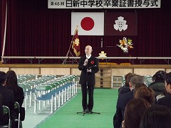3月13日(金)、なごり雪のちらつく中ではありましたが、第48回福知山市立日新中学校卒業証書授与式を行いました。3年生らしく、堂々と式典に参加し、178人が節目となる15歳の春を迎えることができました。新天地での活躍を心からお祈りしています。