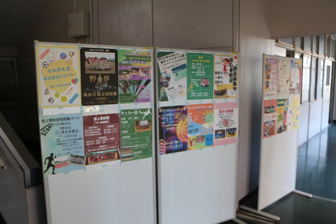 部活動紹介ポスター Twitter Facebook はてブ Pocket LINE コピー 2026.04.10 4月8日(水)の教室棟東口の様子です。科学技術部が作成した部活動紹介ポスターが掲示されています。新入生は、4月13日(月)から部活動見学や体験入部が始まります。見学や体験をとおして、3年間がんばれる部活動を見つけてほしいと思います。