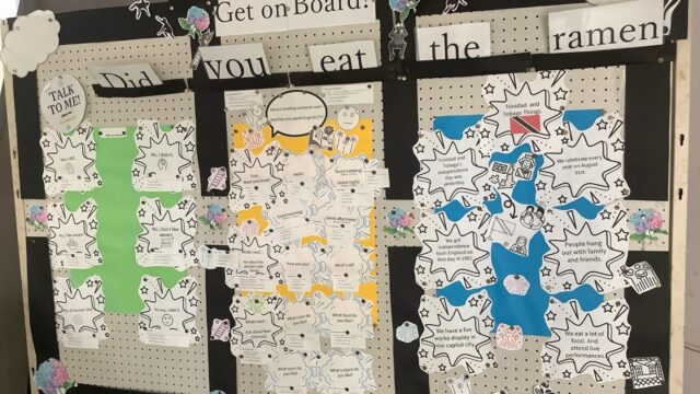 本日の日新中 Get on Board! 生徒棟1階階段前の掲示板の様子です。ALTのマクドナルド先生から楽しいメッセージが色々と掲示されています。メッセージを受けて、英語の時間にどんどん質問してほしいと思います。 2025.09.26 本日の日新中