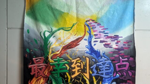 本日の日新中 最幸到達点~みんなで創る五色の感動~ 9月29日(月)の生徒棟の入り口の様子です。10月2日(木)の体育祭に向けての美術部の力作が掲げられています。体育祭の成功を目指し、チーム日新で頑張っています。 2025.10.01 本日の日新中