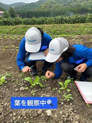 大きくなってきたダイコンの観察と間引き、除草を行いました。 間引きしたダイコンは生徒が自宅へ持ち帰り、「食べておいしかった!」と報告してくれました。 これから気候が涼しくなり、作物が成長しやすくなりますが、虫と雑草との戦いです。