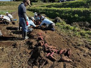 作物コース2、3年生と有志の先生で、サツマイモ掘りを行いました。収穫したサツマイモの品種は、紅あずまと紅はるかです。今後の販売をお楽しみに。
