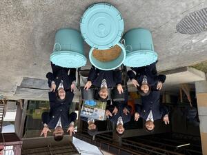 先日行われたコラボイベントの際、都ホテル京都八条様から、餌を入れておくための「大きいバケツ」とバケツを干す「バケツラック」を贈呈していただきました。 これは、イベントに参加された方々からの贈呈品でもあり、畜産流通コースの生徒・職員より心より感謝を申し上げます。 割れたバケツを使いながら餌を与えていた時期もあり、不便に感じることもありましたが、贈呈品が届いてからは作業がスムーズに進み、ウシと触れ合える時間が増えました。 ありがとうございました。