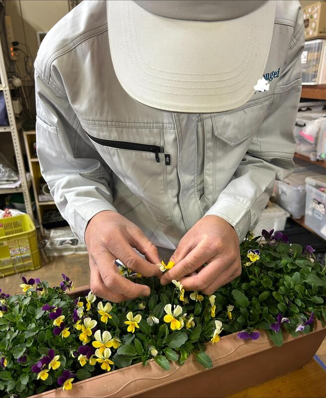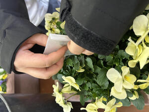 草花・生物工学コースの1年生がビオラの交配に取り組みました。 中学校の理科や高校の生物でも学ぶ人工授粉や植物の構造を確認しながら実際に体験する活動でした。