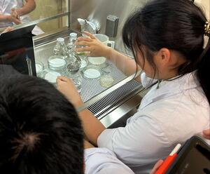 本校のイチゴ栽培は、ハウスの規模が大きくないことから、受粉作業にハチを使わず、生徒が手作業で一つひとつ丁寧に交配を行っています。細かな作業ではありますが、確実に受粉させるために、花の状態を確認しながら慎重に進めています。時間と手間のかかる工程ですが、実が膨らみ、真っ赤に色づいていく様子を見ることで、生徒たちは栽培のやりがいや達成感を感じています。