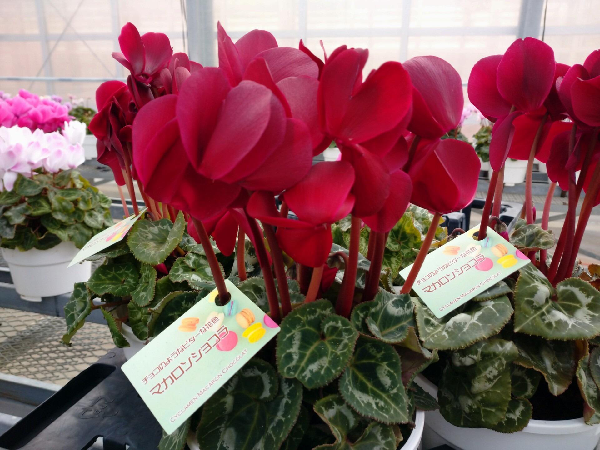 今年も本校の草花コースの生徒が実習で生産したシクラメンが花を咲かせてきました。