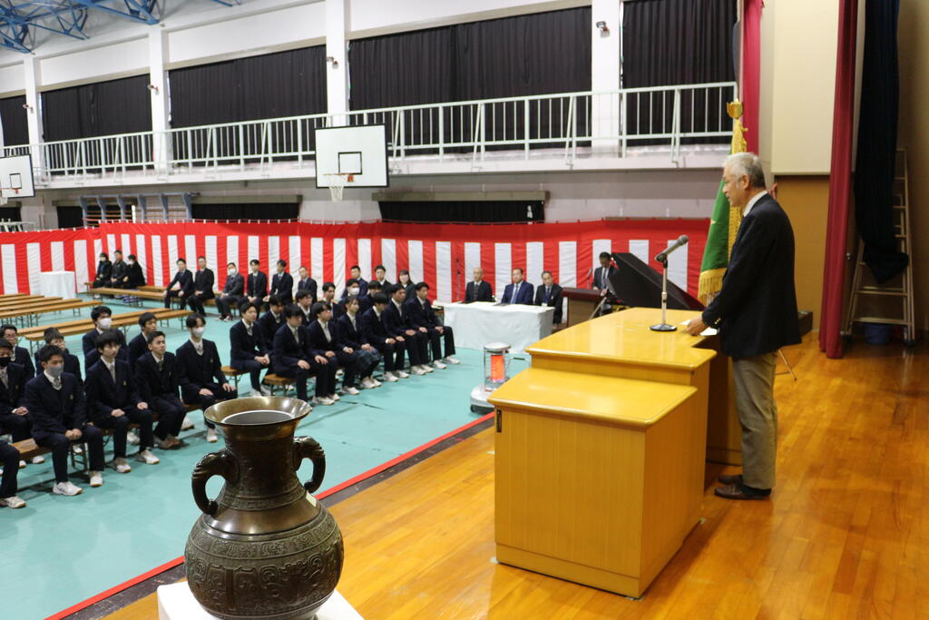 明日、第41期生が旅立ちます。 この日は卒業式の予行を兼ねて教育後援会・船南同窓会の入会式を行いました。後援会長、同窓会長から心温まるお言葉をいただき、代表生徒も決意を述べて応えました。卒業生のみなさん、これからも母校を温かく見守ってください。