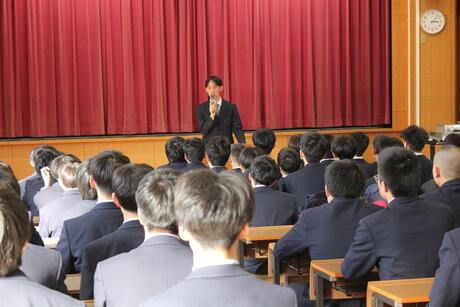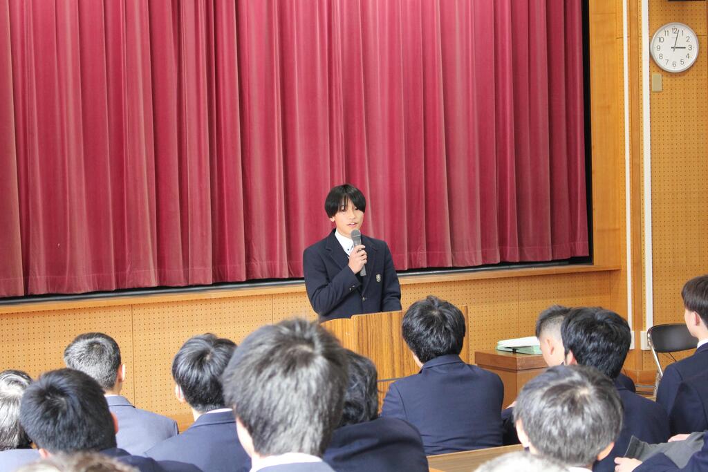 進路指導部長からは、過去の自分しか今の自分を支えることはできないため、コツコツと積み上げることが大切。阪神タイガース藤川監督の「日々順調であることを疑い、不安であることを正解だと思え」を例に挙げ、生徒の皆さんもチャレンジ精神を持って生活して欲しいとの話でした。