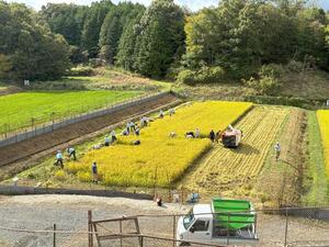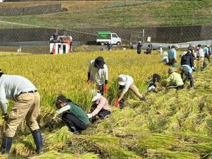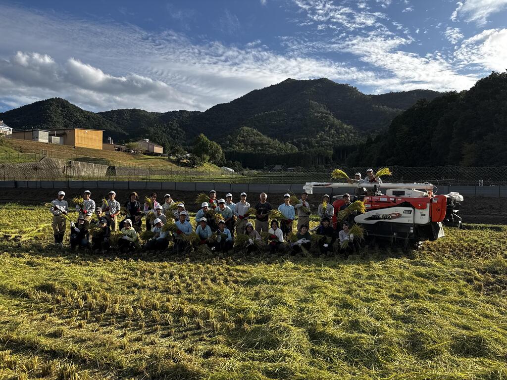 9月29日5・6限、府立大生と一緒に稲刈りを行いました。 長年共同研究している酒米を夏前に植え付けたものが立派に実り、収穫の時を迎えました。 府立大学の川田教授、津下教授、中村准教授をはじめ、府立大生の皆さんと汗を流しながらの体験は、とても実り多い時間になりました。