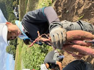 生徒達は前日に農芸高校の圃場でも掘り取り方法を練習し、当日を迎えました。「大きいのとれたよー!みてみてー!」と子供たちもうれしそうでした。