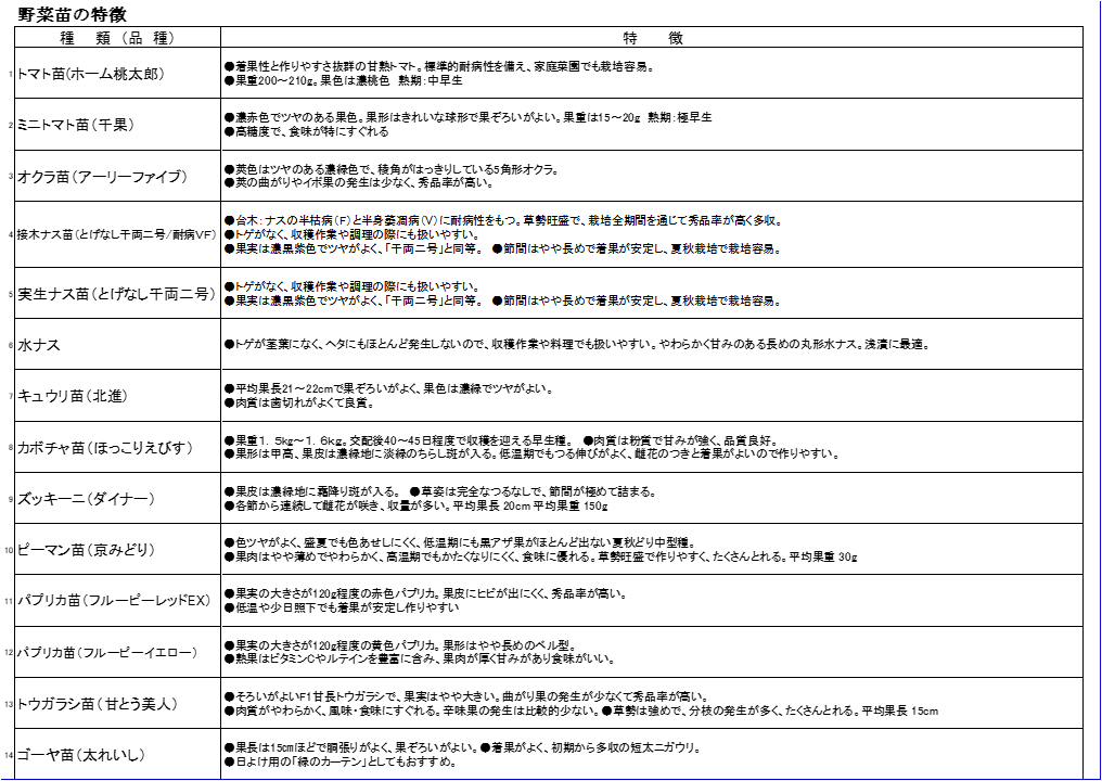 ※注文日によっては、ご希望の苗が欠品していたり、ご希望の数量がご用意できない可能性がありますのでご了承ください。