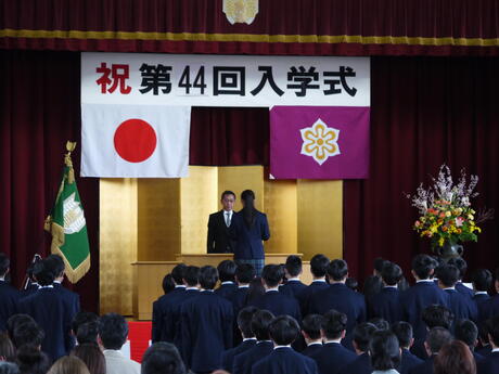 晴天に恵まれ、桜に包まれた校舎でのもと第44回入学式が挙行されました。