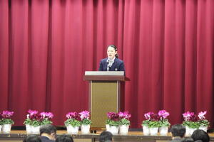 校長先生の式辞では、医師の加藤俊徳さんの言葉である「脳にベクトルを持つ」ことの重要性について紹介がありました。人間は得意な「脳番地」で物事を考えるため、明確な目標を持ったり得意分野を持つことで脳番地が活性化され、成功を掴むことができます。令和8年は自分がこうなりたいという明確な目標を持って脳を活性化させる充実した高校生活を送って欲しいとのお話でした。