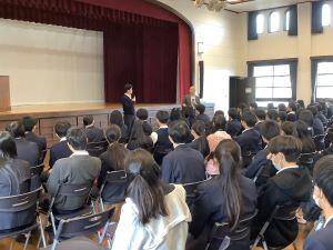 11/12 2年生進路講演会を実施しました 【 2025/11/12 】 11/12(水)の6限に2年生を対象に進路講演会を開催しました。 今回は佛教大学教育学部の原清治先生をお招きし、「21世紀に求められる『力』について考える」というテーマでご講演いただきました。 講演では、生徒たちとの質疑応答や教員とのやり取りを通じて、未来を切り拓くためのヒントを提示してくださいました。
