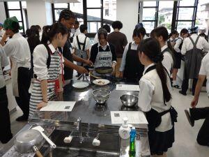 2年生の書道・音楽・数学の授業を一緒に受けたり、調理実習ではみんなでみたらし団子をつくりました。また、和室で茶道体験を行いました。