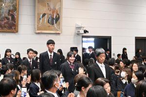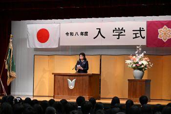 桜の花びらが鴨沂の御門に舞う今日の佳き日に、令和八年度京都府立鴨沂高等学校の入学式を挙行するにあたり、本校PTA会長 古澤 奈央子 様をはじめ多数の御来賓の皆様並びに、保護者の皆様の御臨席を賜り、高壇からではございますが、厚く御礼申し上げます。