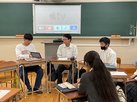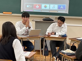 9月30日(火)、公共マネジメント系統卒業生の三沢心太郎さん(福知山公立大学1年)を講師に招き、「系統卒業生の講話」を実施しました。いま、大学で学んでいることや在学中の系統の学びの成果を中心に、在校生と対談しました。「大学は挑戦の場」や「実践的な学びができる」と、メッセージを送ってくれました。