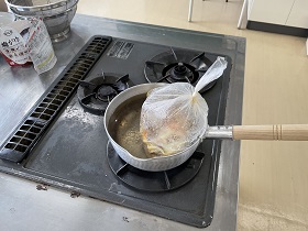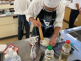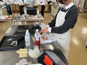9月29日(月)、3年次公共マネジメント系統では、災害時の避難所での調理を想定した「防災クッキング」に取り組みました。アルファ化米を美味しく食べるために、耐熱ラップや缶詰等を活用しながら、各自が調べたレシピにそれぞれ挑戦しました。調理後は試食会を行い、意見交換をしました。