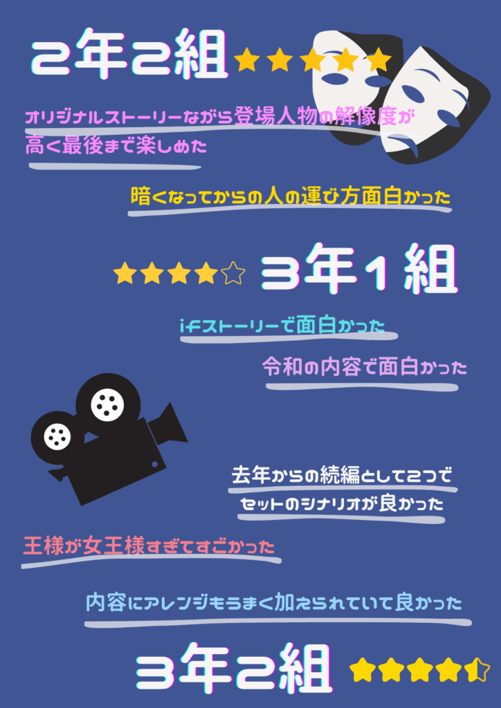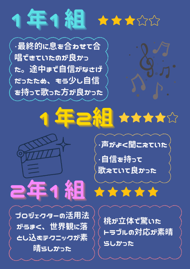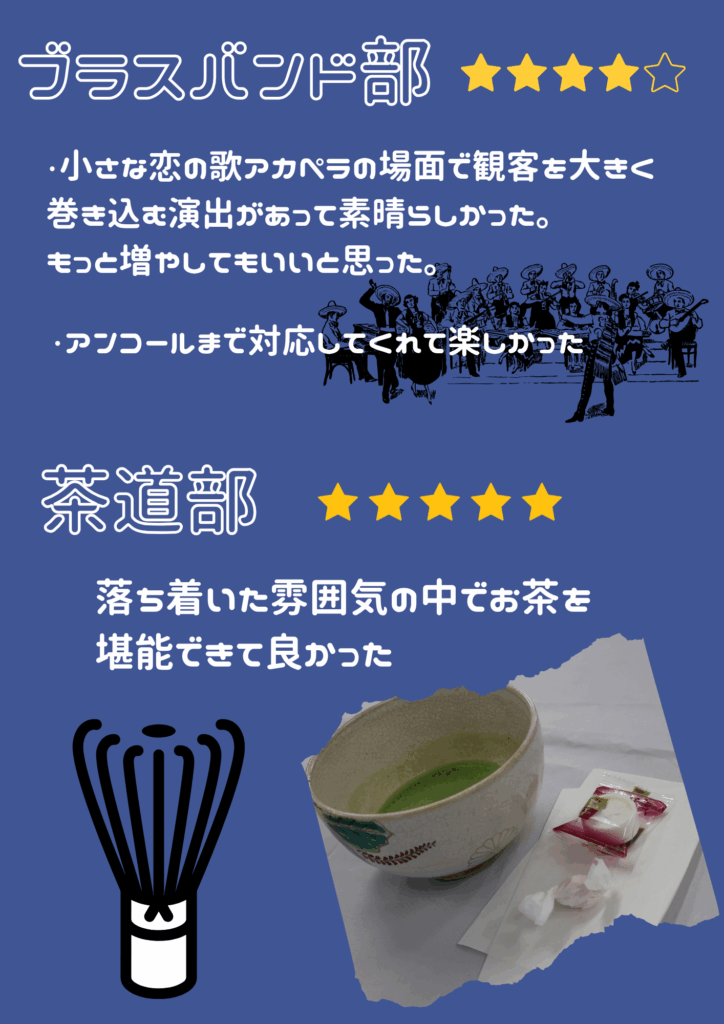 文化祭 コメント集 未分類 Twitter Facebook はてブ Pocket LINE コピー 2025.10.14 文化祭から約1ヵ月、体育祭から約3週間が過ぎました。文化祭を運営してくれた文化委員からコメント集が届きました。ぜひご覧ください。 学校公式インスタグラムには、学校祭のまとめ動画も上がっています。併せてご覧ください。 Post Views: 22