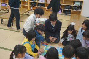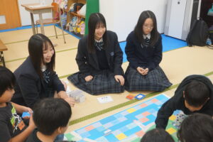 10月22日(水)映像デザイン系統2年次生2名、3年次生3名が、福知山市立大江小学校の学童の児童を対象に、すごろくを実施しました。