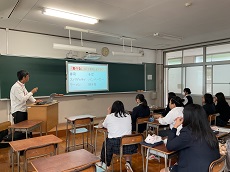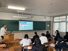 10月21日(火)、2年次生選択「社会福祉基礎」において、聴覚障害理解学習を実施しました。講師として、福知山市聴覚言語障害センターより言語聴覚士・藤村様をお迎えし、難聴・聴覚障害の方とのコミュニケーションについてや話し方についてご講演いただきました。