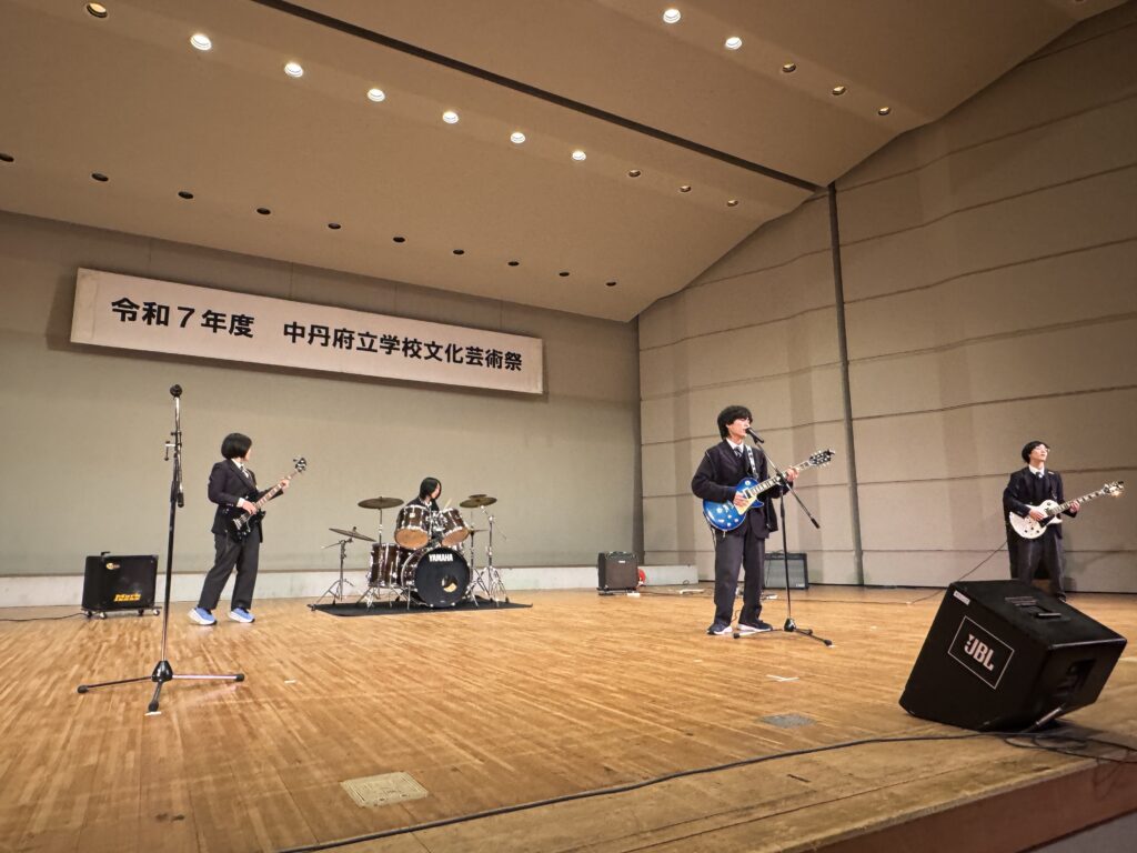 学校の様子11月9日(日)京都府中丹文化会館にて、「令和7年度中丹府立学校文化芸術祭」が実施されました。本校からは展示部門に写真部、舞台部門にブラスバンド部、地域創生研究部「軽音楽」「ダンス」と多くの生徒が参加し、日々練習している部活動の成果を発揮することができました。また、今年度は事務局校として運営にも携わり、貴重な経験を積むことができました。