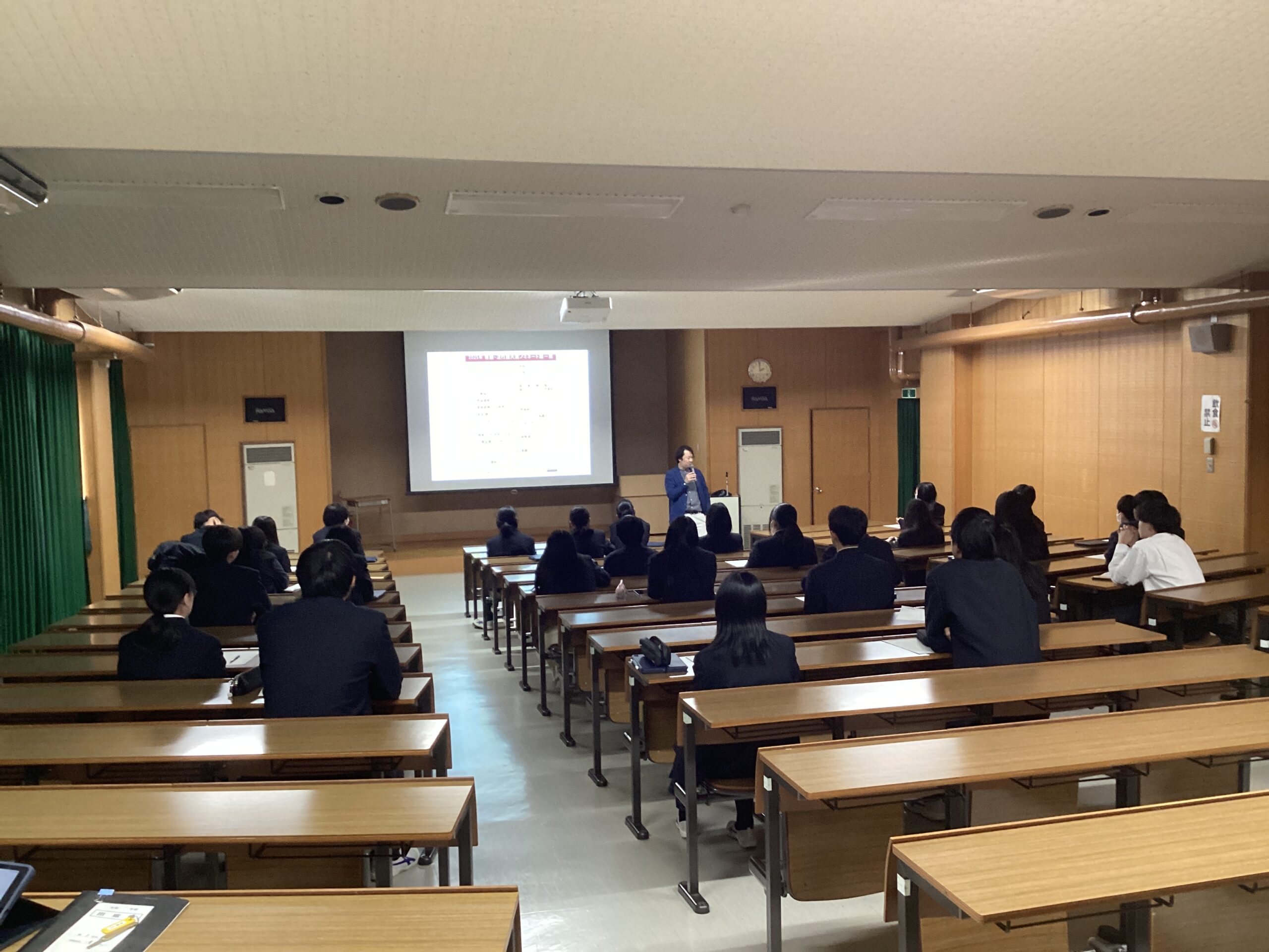 令和7年11月21日(金)、1年次生を対象に進路講演会を実施しました。講師として福知山公立大学准教授 杉岡秀紀様をお迎えして「探究(学び)の意義と問いの作り方」をテーマに「勉強と探究」「働くこと」など様々な内容について御講話いただきました。生徒は学びと働きについて考え、自分の進路について意識を高めることができました。
