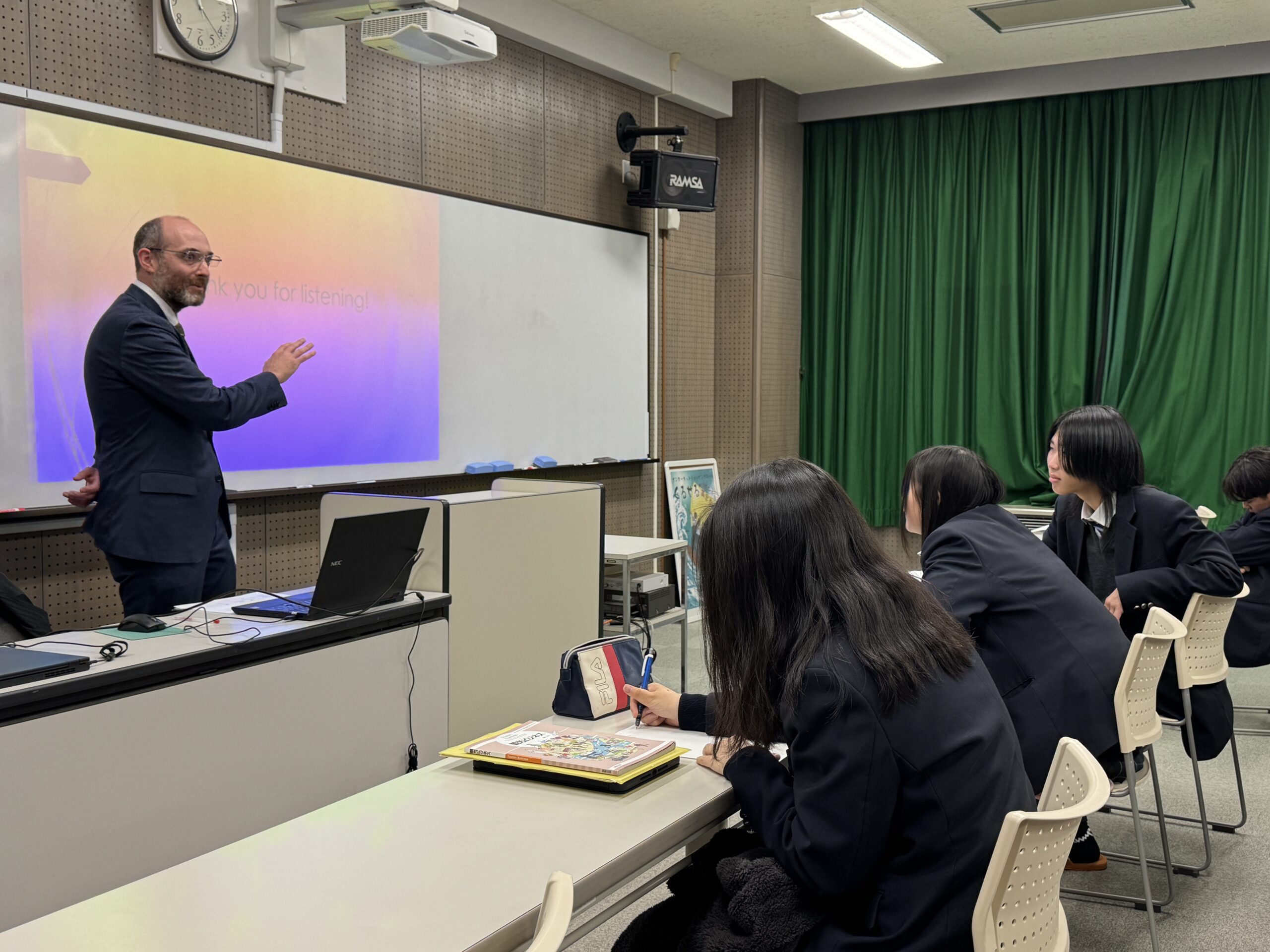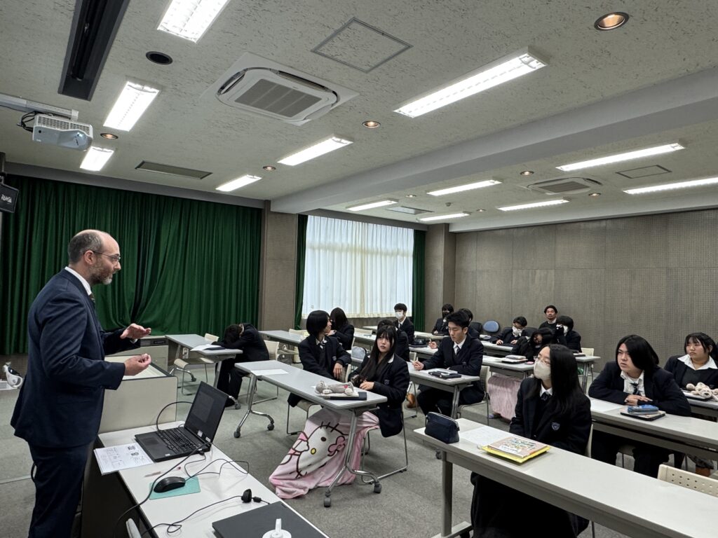 「観光ビジネス」の学習の一環として、12/12(金)海の京都DMOから2名の講師をお迎えして、出前授業を実施しました。古代より大陸との交流で栄え、重要な舞台となった「もうひとつの京都」を知ることが目的です。また、全国有数の観光圏「海の京都」を通して、魅力ある観光まちづくりや観光における課題を考え、探究活動を実践していきます。