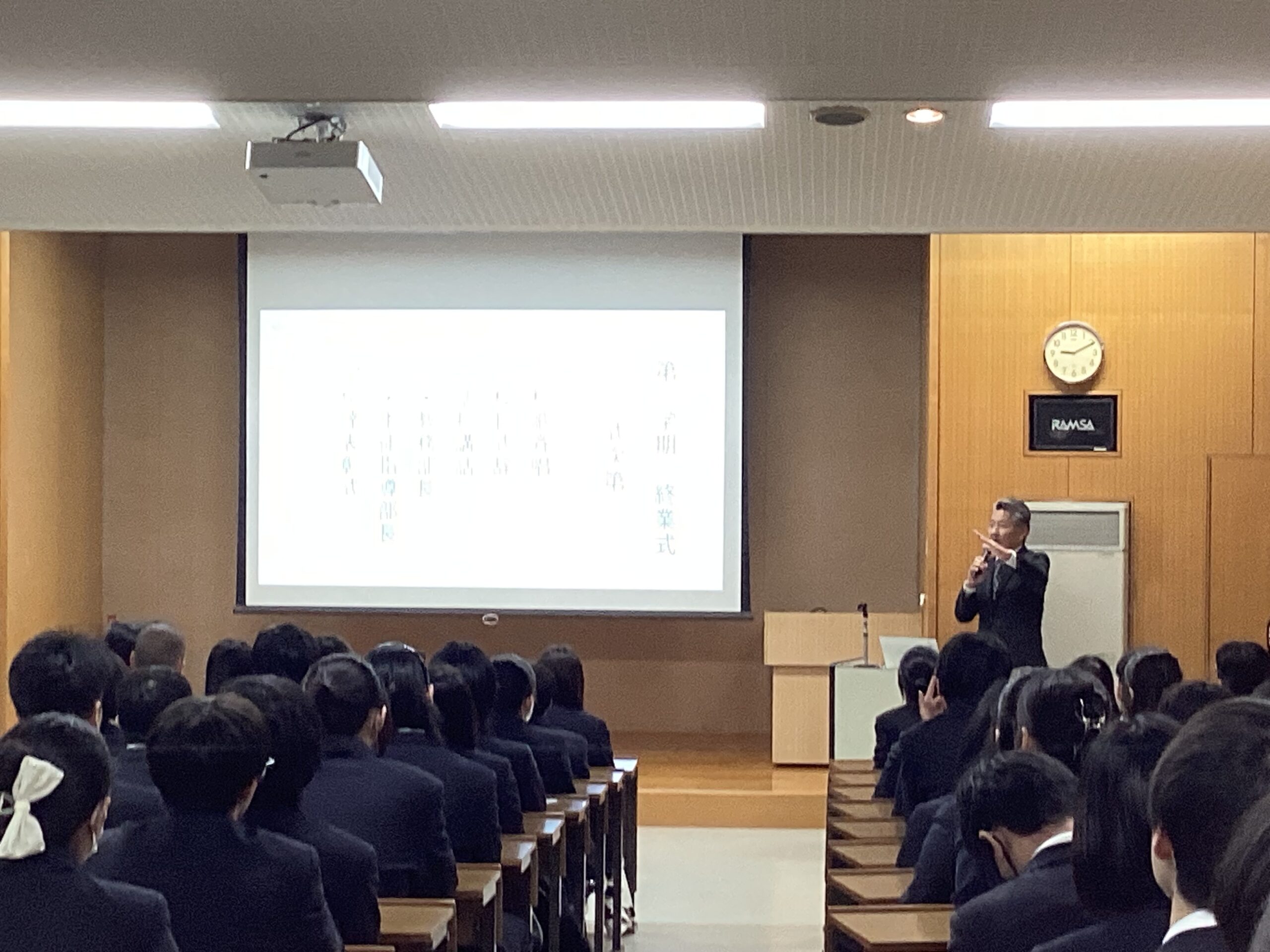 学校の様子 12月19日(金)、令和7年度2学期終業式を行いました。校長式辞のあと、教務部長、生徒指導部長の講話がありました。