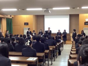 12月19日(金)、令和7年度2学期終業式を行いました。校長式辞のあと、教務部長、生徒指導部長の講話がありました。
